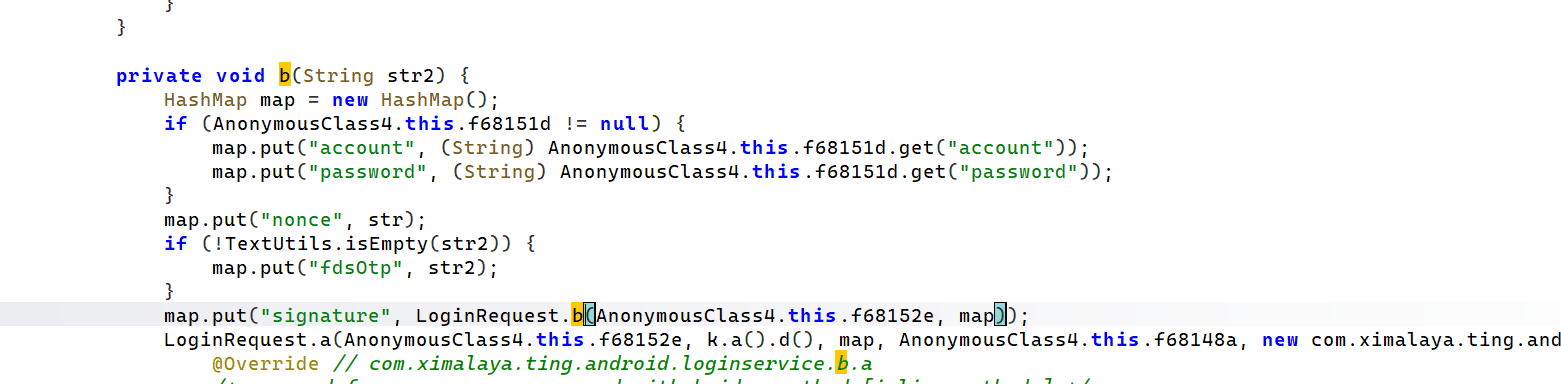 进去之后发现就找到了 signature 这个字段,它调用了 LoginRequest 这个类的 b 方法