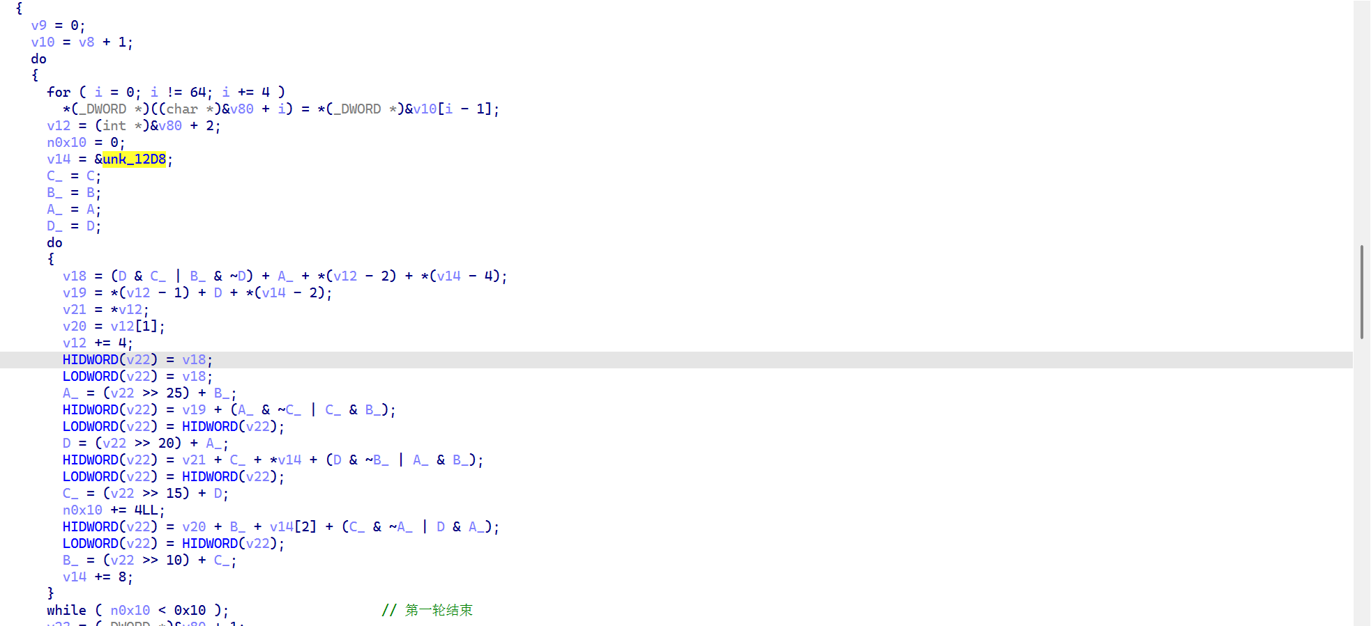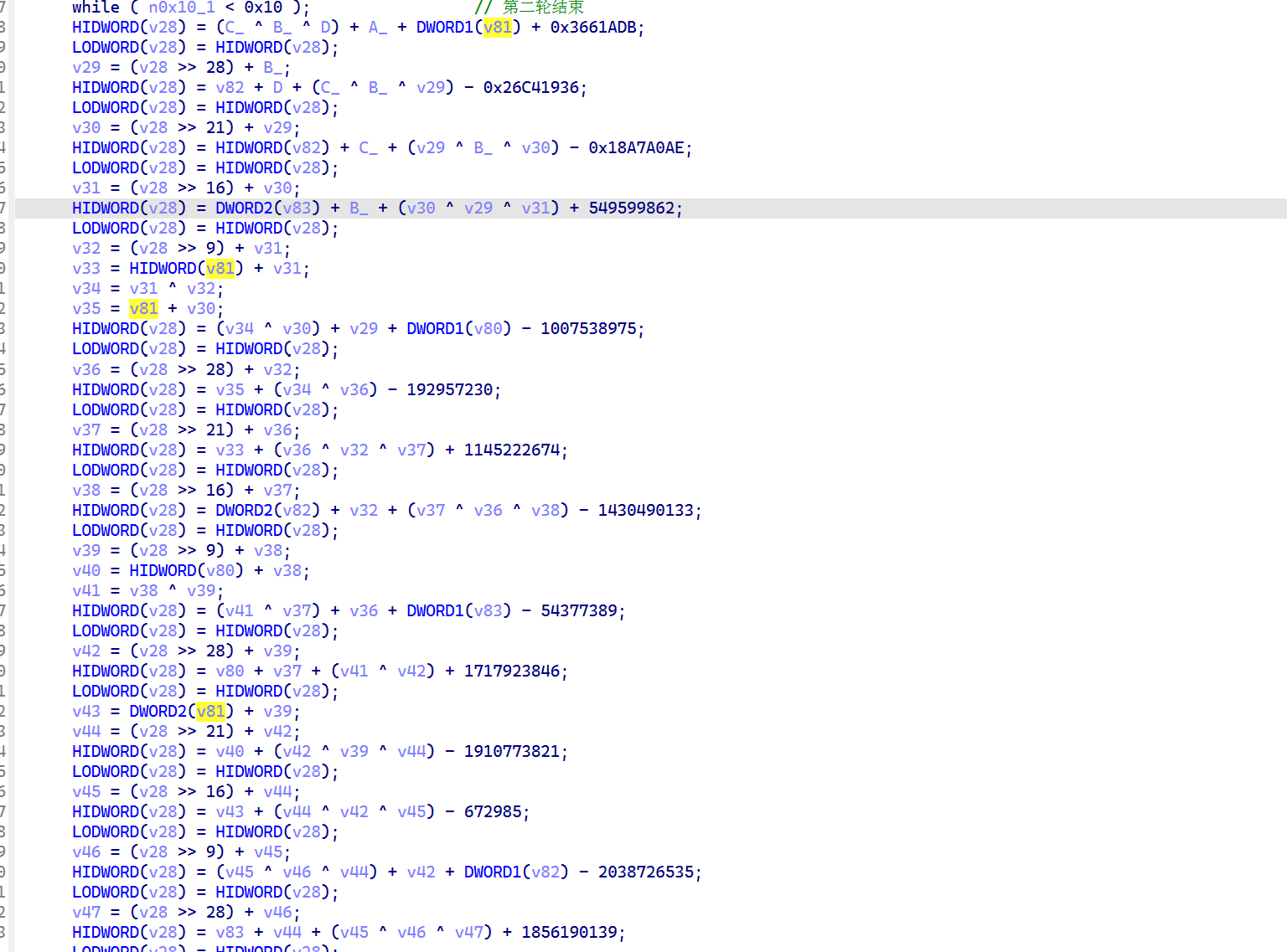先来看一下在 ida 中第三轮魔改的代码