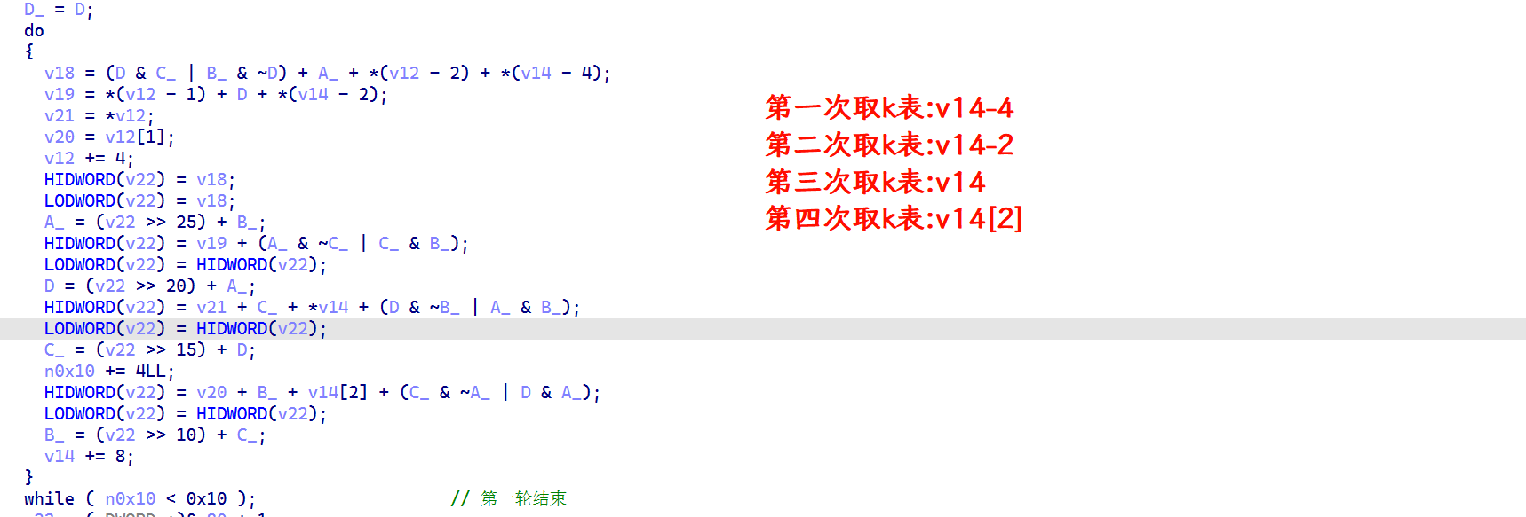 首先先来看第一轮运算,我把变量名改了一下,这样我看得清楚一点